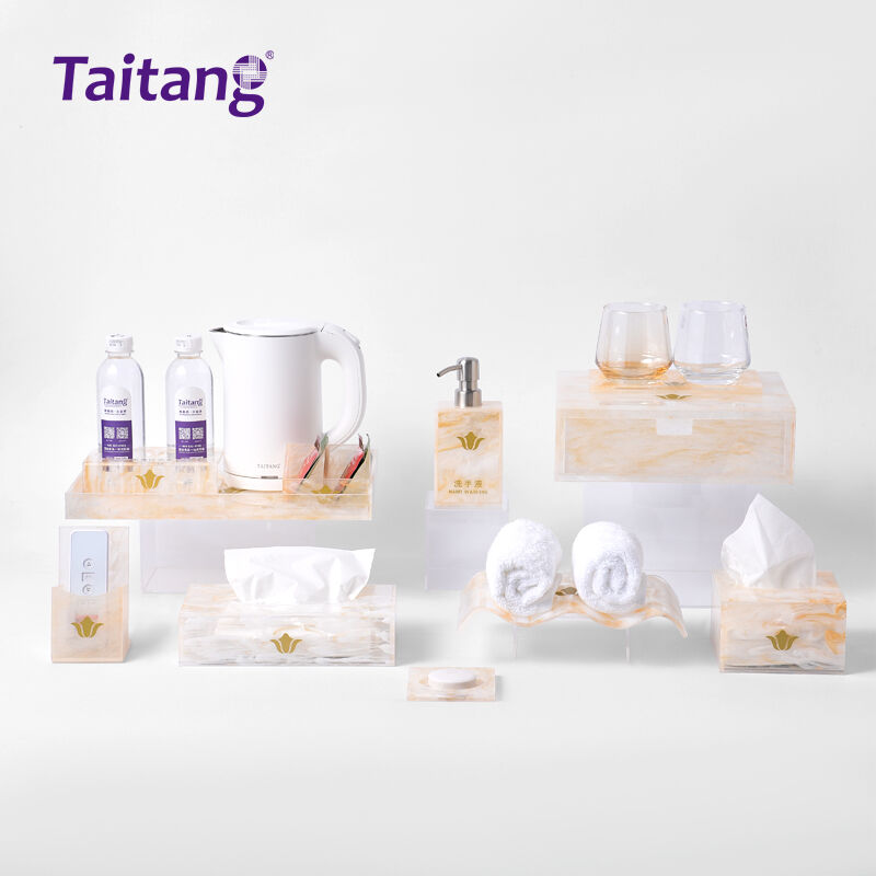 Every product from Taitang can be customized with a unique brand logo, highlighting the exclusive identity of your hotel brand. The rounded corner design not only prevents accidental bumps but also enhances the softness of the overall silhouette, perfectly complementing the warm, smooth texture of the amber-patterned surface.